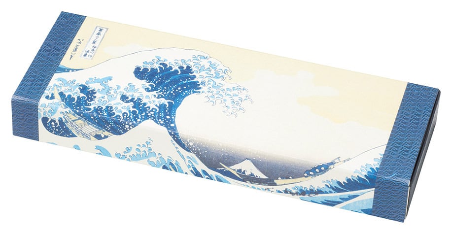 外箱は「神奈川沖浪裏」の絵柄で装飾されており、日本文化を象徴するアート性の高いパッケージです。