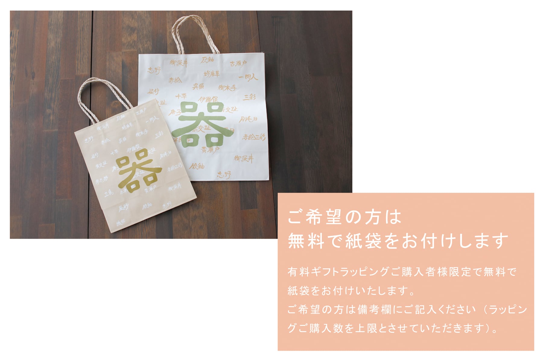 ギフトラッピングのセットとなります(紙袋が必要な方は備考欄に記載ください)