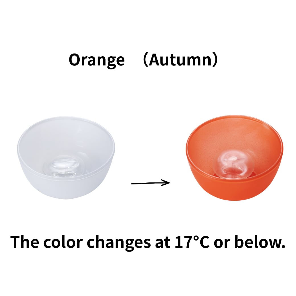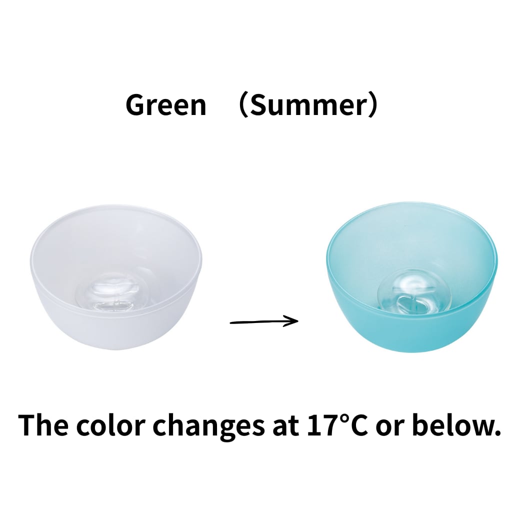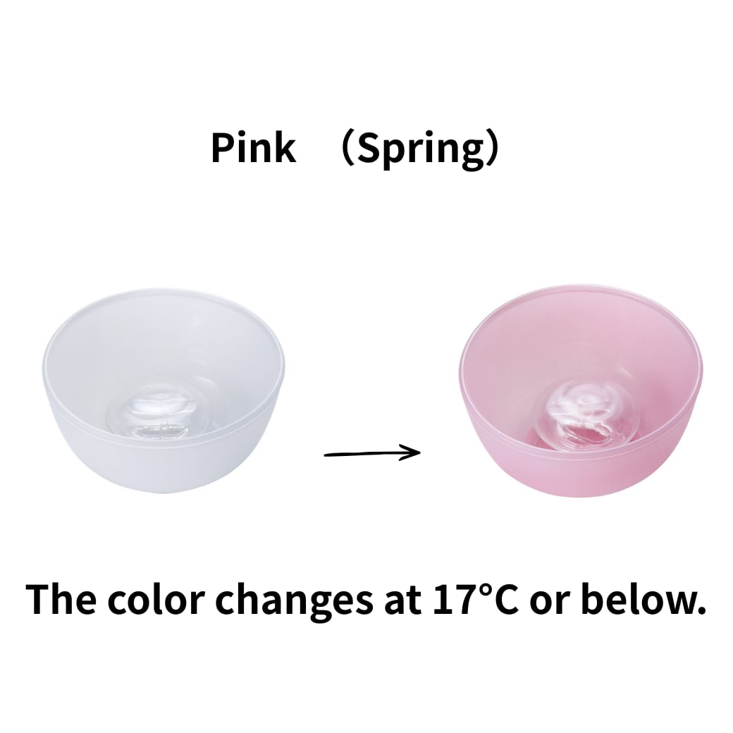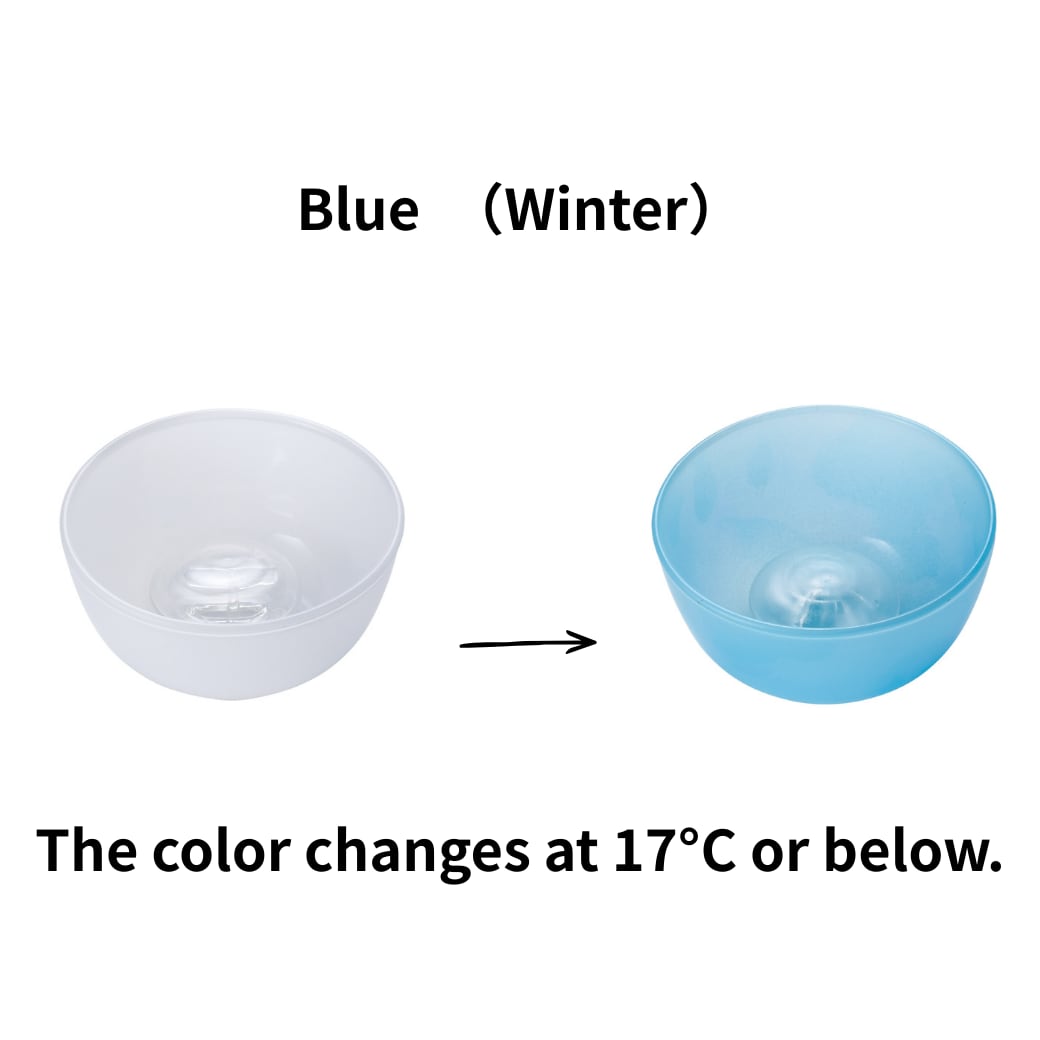 器自体の温度が17℃以下になると、特殊な温度感受性インクが反応。冷えた日本酒を注ぐことで、器が鮮やかに色づき、目でも「冷」を感じることができます。