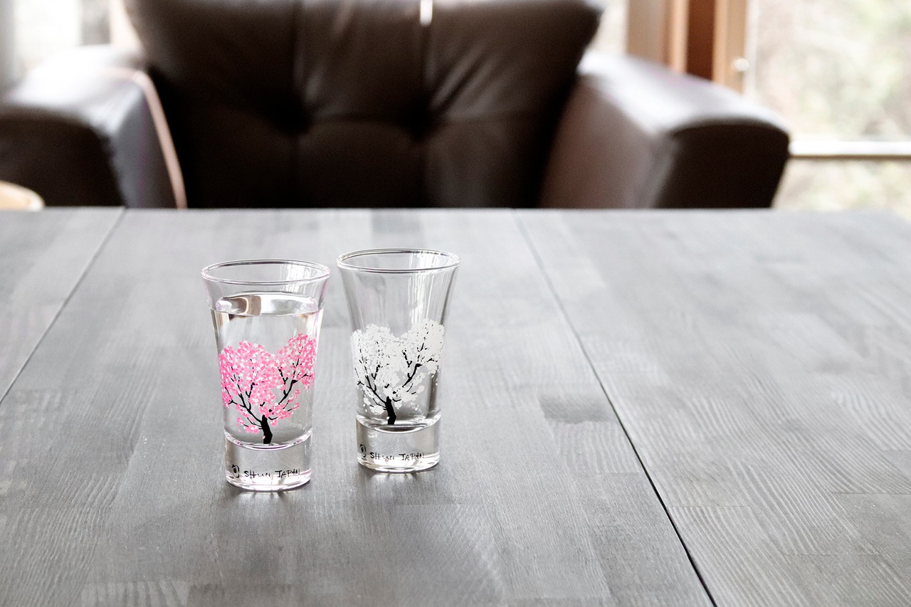 この不思議なグラスに冷たい飲み物を注ぐと桜が鮮やかに彩ります!!