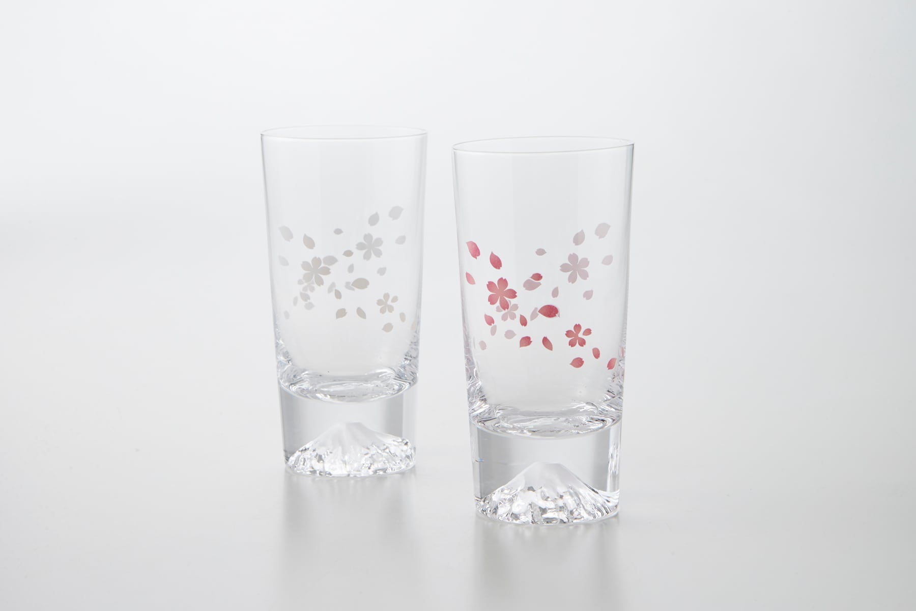 【0100-058-00】『冷感桜舞富士山』『タンブラー』 *母の日 父の日 春 桜 富士山 タンブラー 江戸硝子 花見 贈り物 温度 変化 乾杯 ギフト プレゼント お祝い 敬老の日