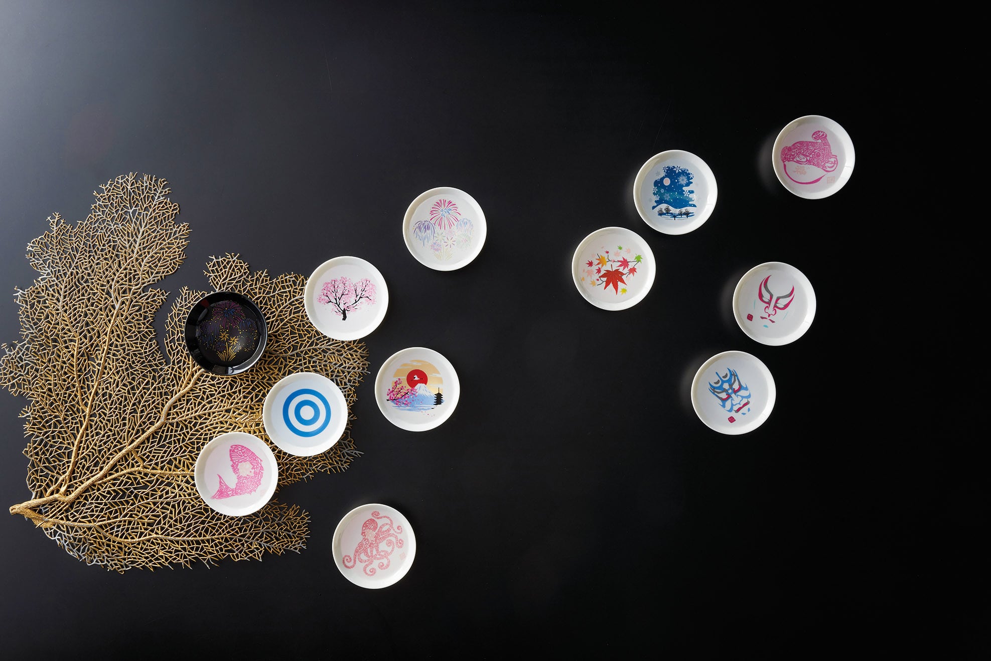 (冷感桜/冷感花火(白&黒)/冷感紅葉/冷感雪結晶/冷感歌舞伎(赤&青)/冷感蛇目/冷感富士山各1)白平盃 各1ケ入り