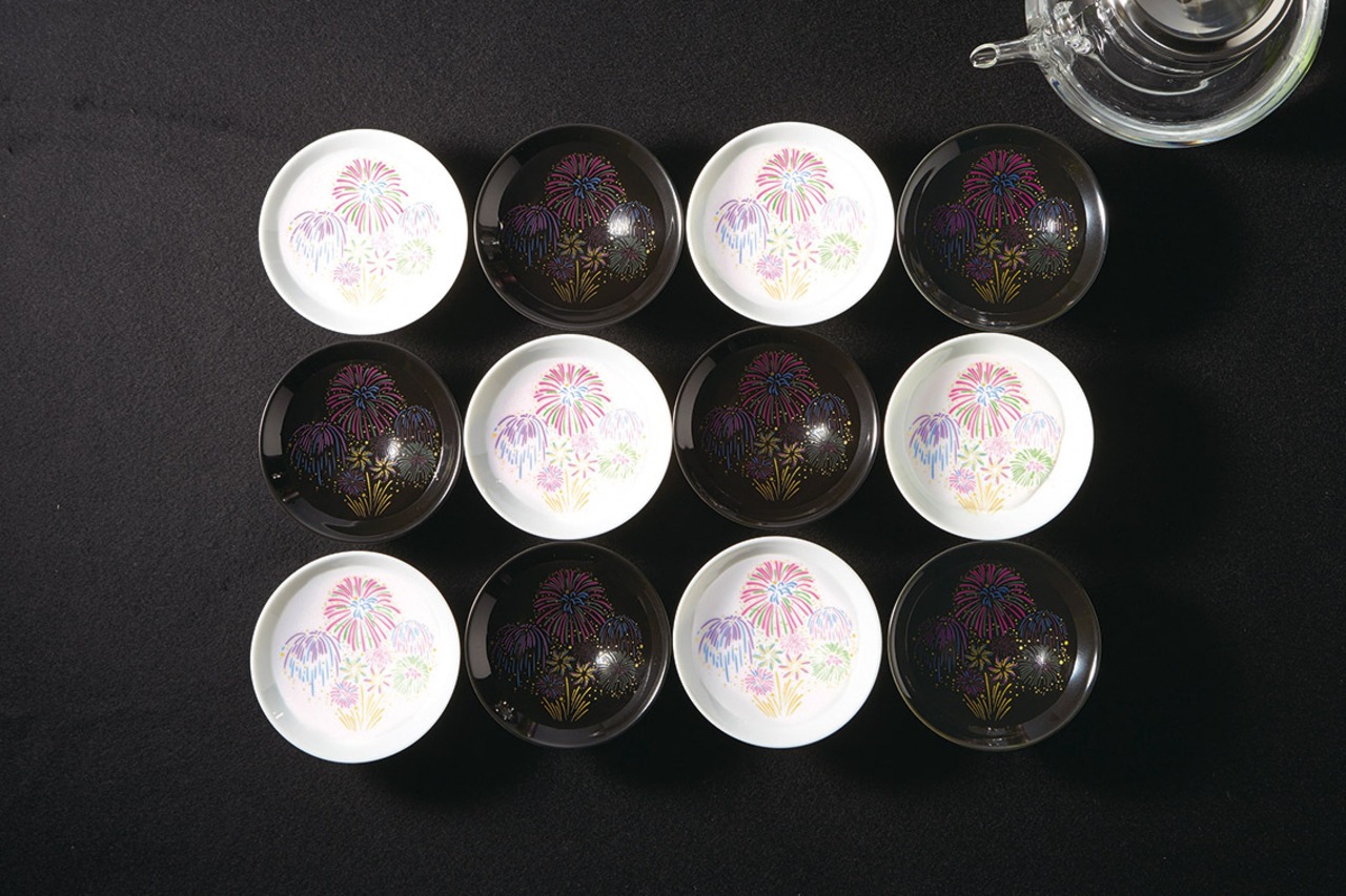 平盃に冷たい飲み物を注ぐと鮮やかな花火が浮かび上がります!
